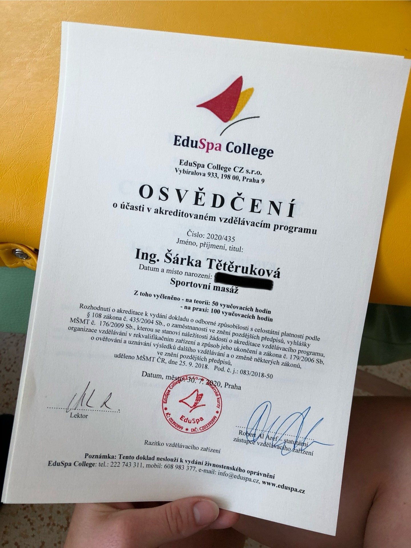 - 2020 - Trigger points, Medová masáž, Dornova metoda a Breussova masáž (EduSpa College s.r.o)